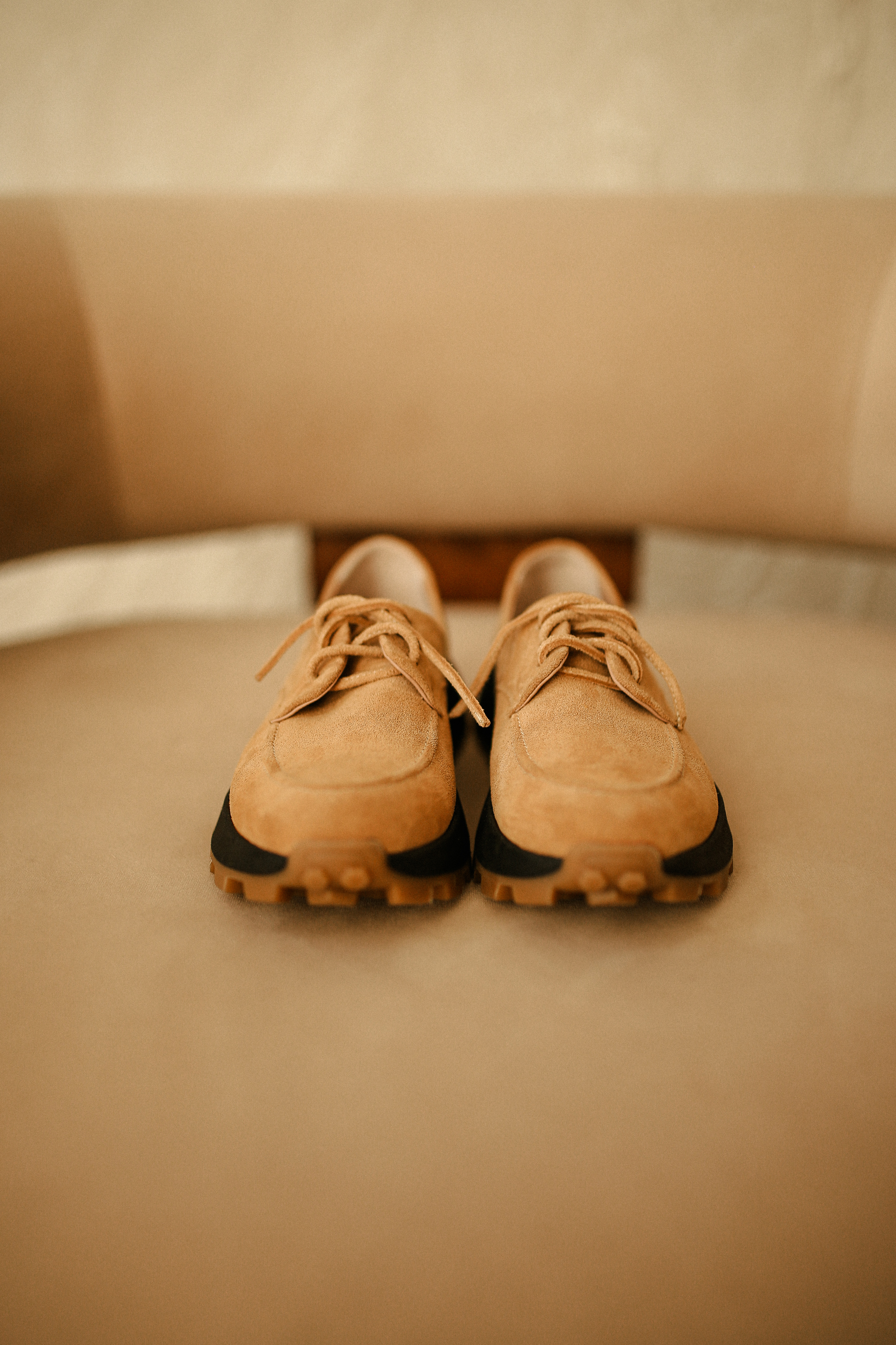 Элегантная модель из натуральной замши, созданная для сочетания удобства и современного стиля. Верх в стиле мокасин гармонично сочетается с лёгкой кроссовочной подошвой. Тёплый карамельный оттенок добавляет образу универсальности и прекрасно подходит как к джинсам, так и к более классическому наряду.